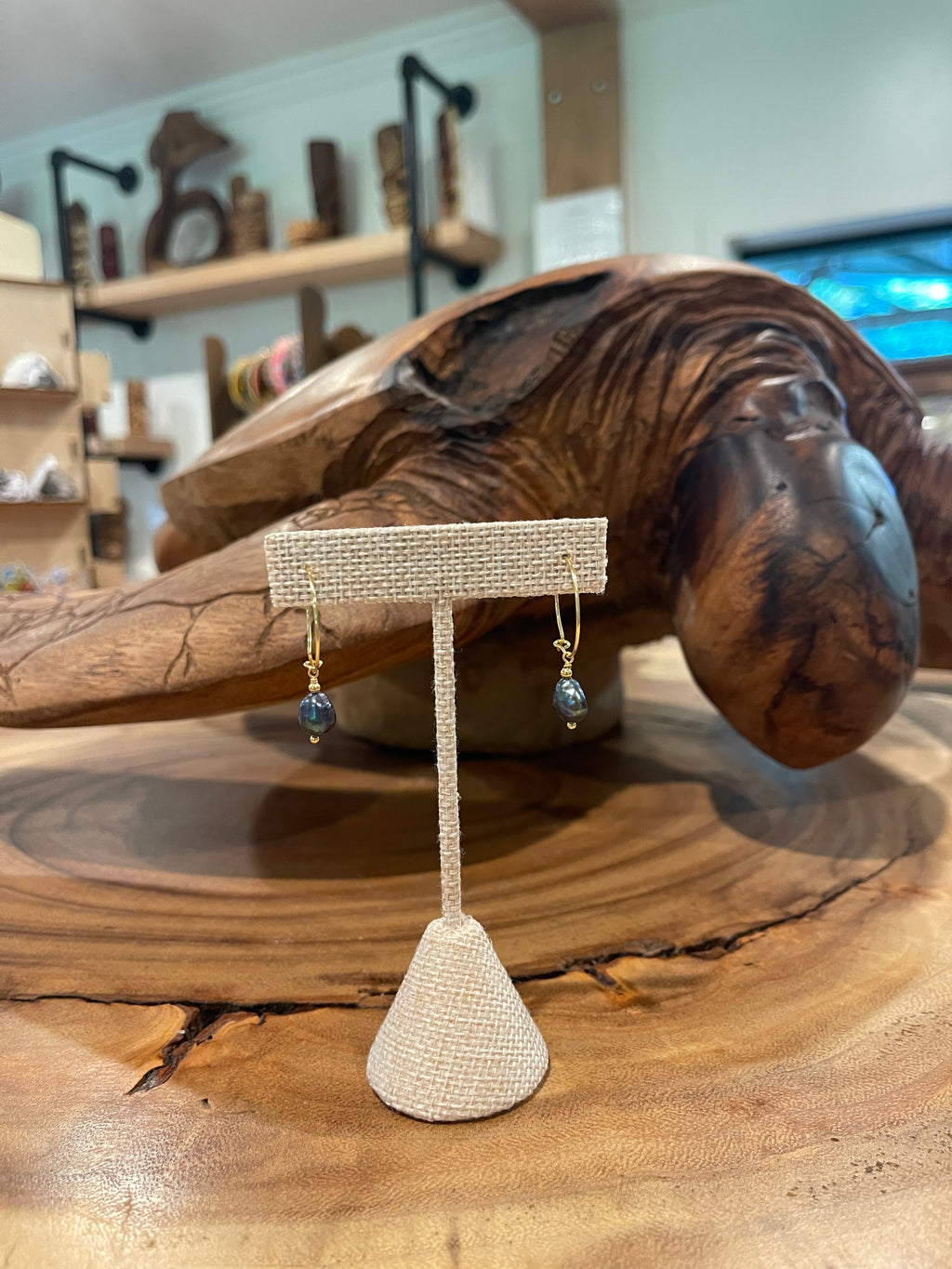 Inspired by the shimmering blues of Hawaii’s ocean, our Ocean Pearl Drops bring a touch of island elegance to any outfit. These gold-tone dangle earrings feature iridescent blue pearls that catch the light beautifully, shifting from deep sea tones to soft coastal hues with every movement.